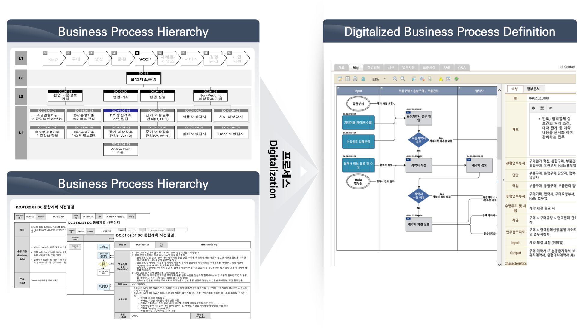 기업의 복잡한 비즈니스 프로세스를 디지털화하여, 효율성을 극대화하고 운영상의 투명성을 확보합니다.
