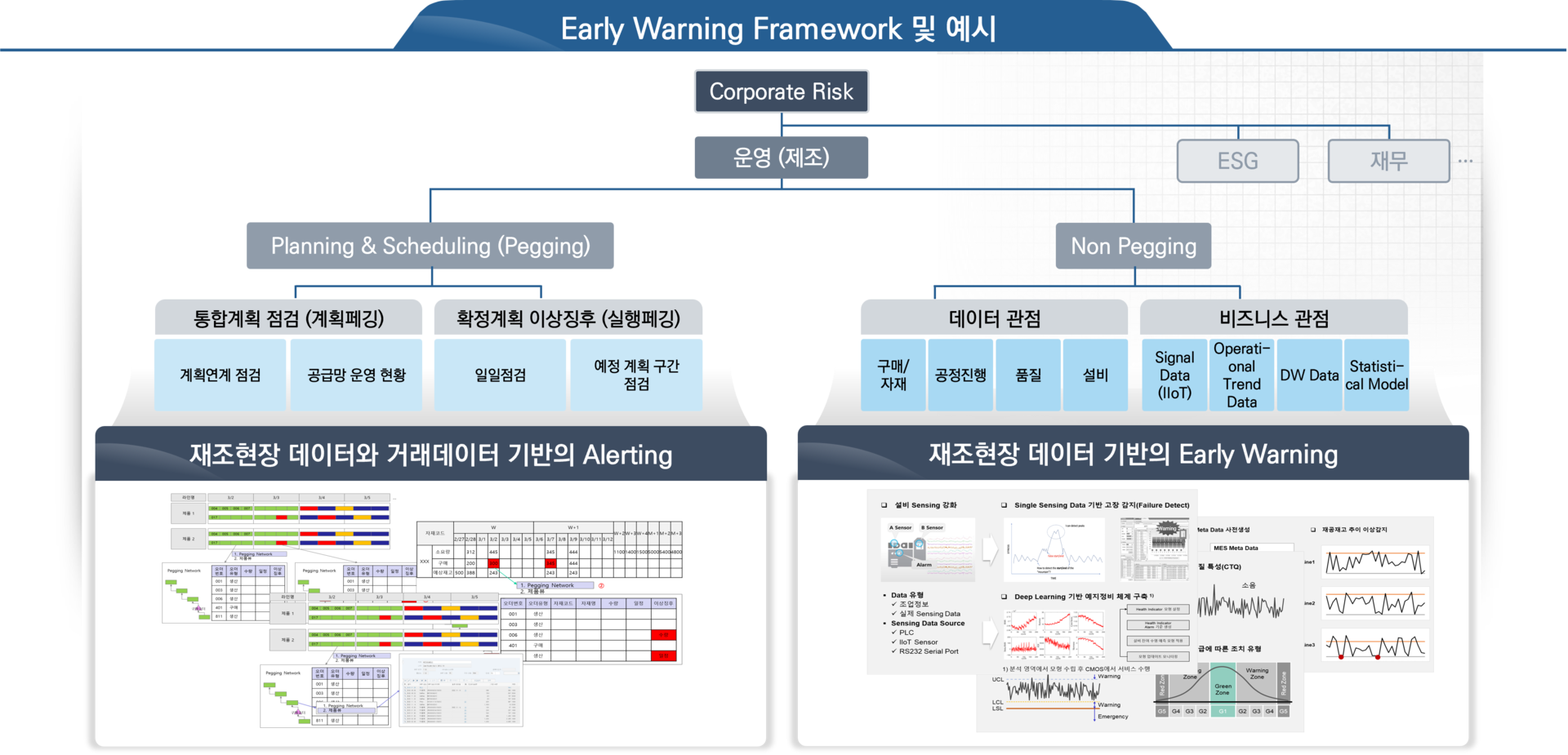 비즈니스 위험 요소를 사전에 감지하고 신속하게 대응할 수 있도록 지원하는 경고/예측 시스템으로, 기업의 안정적인 운영을 보장합니다.